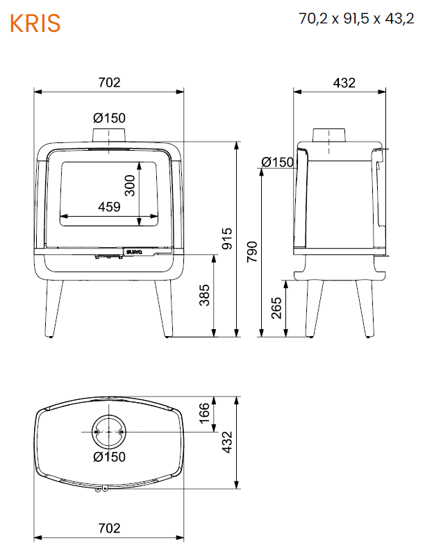 zadné alebo horné pripojenie dymovodu (150 mm)