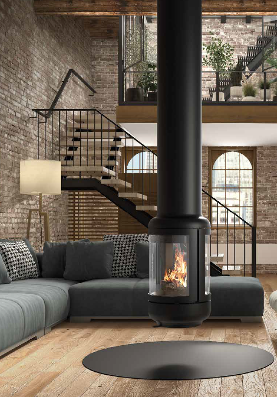 Vesta Central +C je dizajnová piecka s dvoma sklami s 360° výhľadom na plamene. Má viaceré možnosti inštalácie: visiaca alebo s podstavcom.