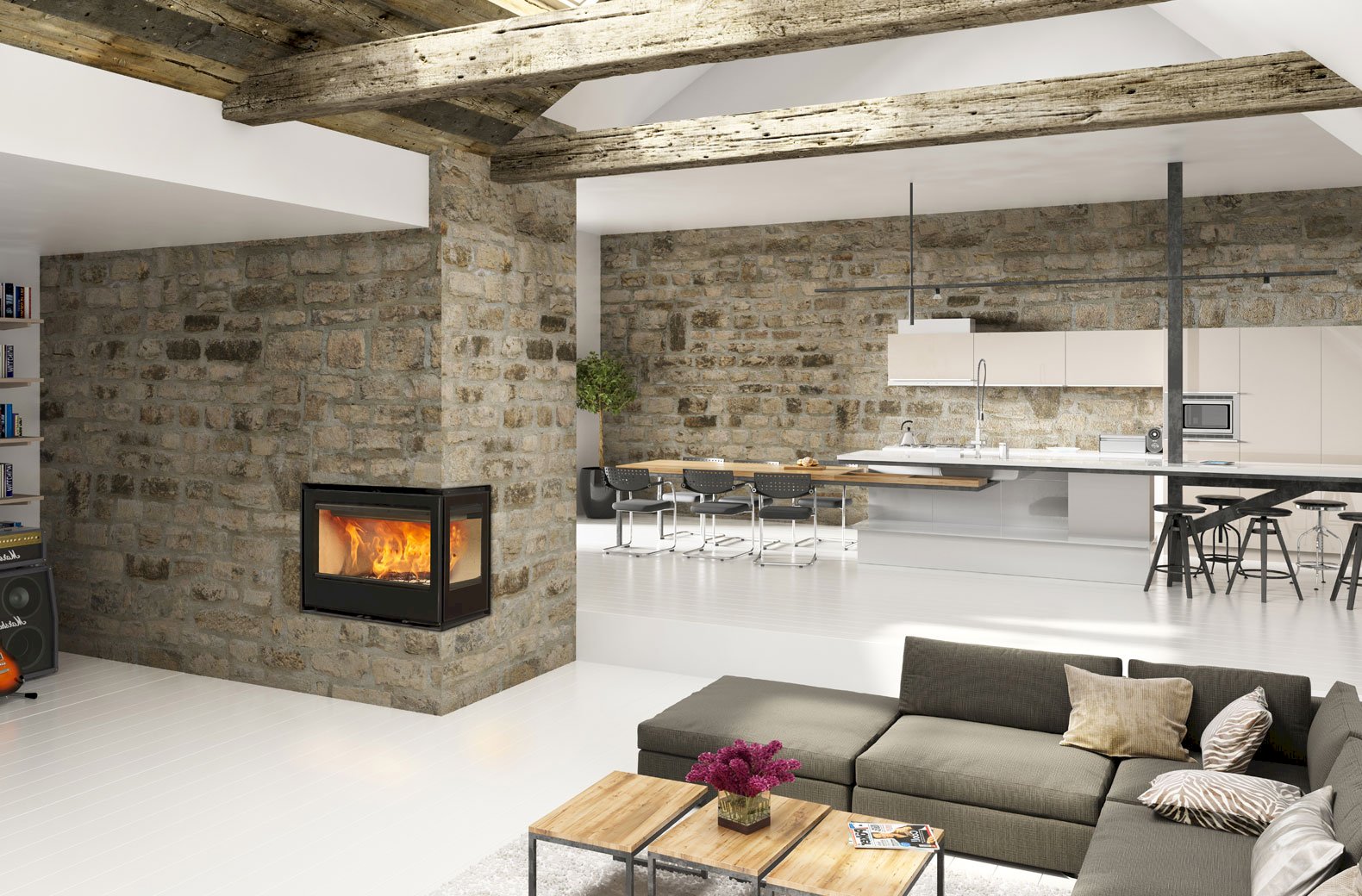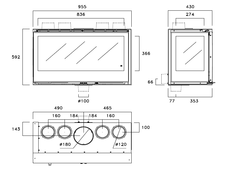 Krbová vložka - INSERT s vermikulitom a bez ventilátorov, presklenie prednej a ľavej strany. So stĺpikom.