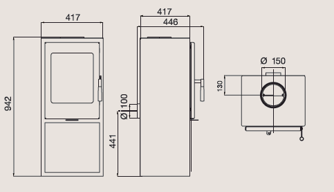 • komínové napojenie 150 mm horné