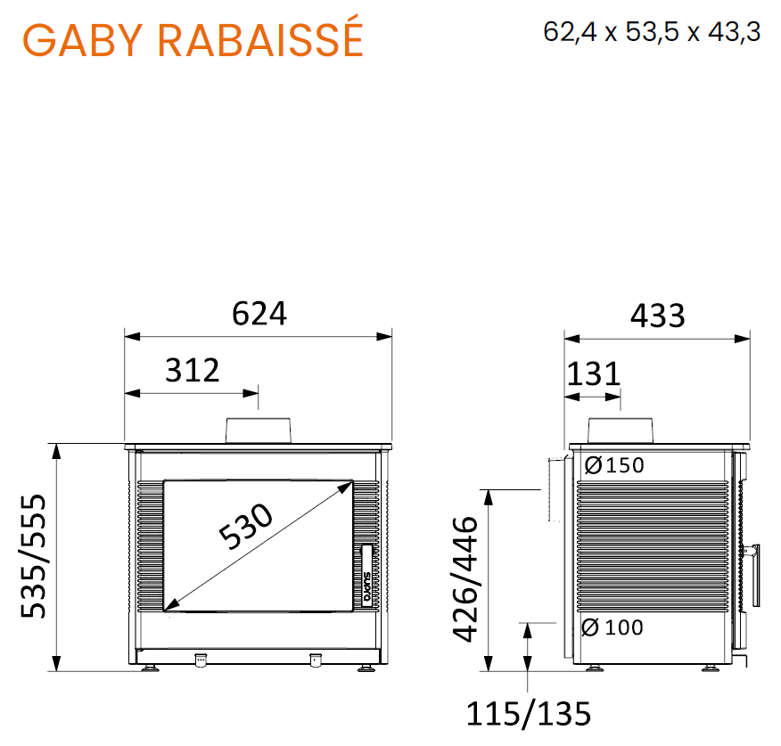 zadné alebo horné pripojenie dymovodu (150 mm)