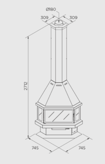 Dizajnová piecka s rustikálnym sopúchom inštalovaná do roha interiéru. Vnútro je vyložené vermikulitovými panelmi, prívod externého vzduchu a terciárny vzduch. Plášť je vyrobený z oceľového plechu. V podstavci je zabudovaný popolník, primárny a sekundárny vzduch. Vysokokvalitné sklo odolné voči vysokej teplote do 750 °C