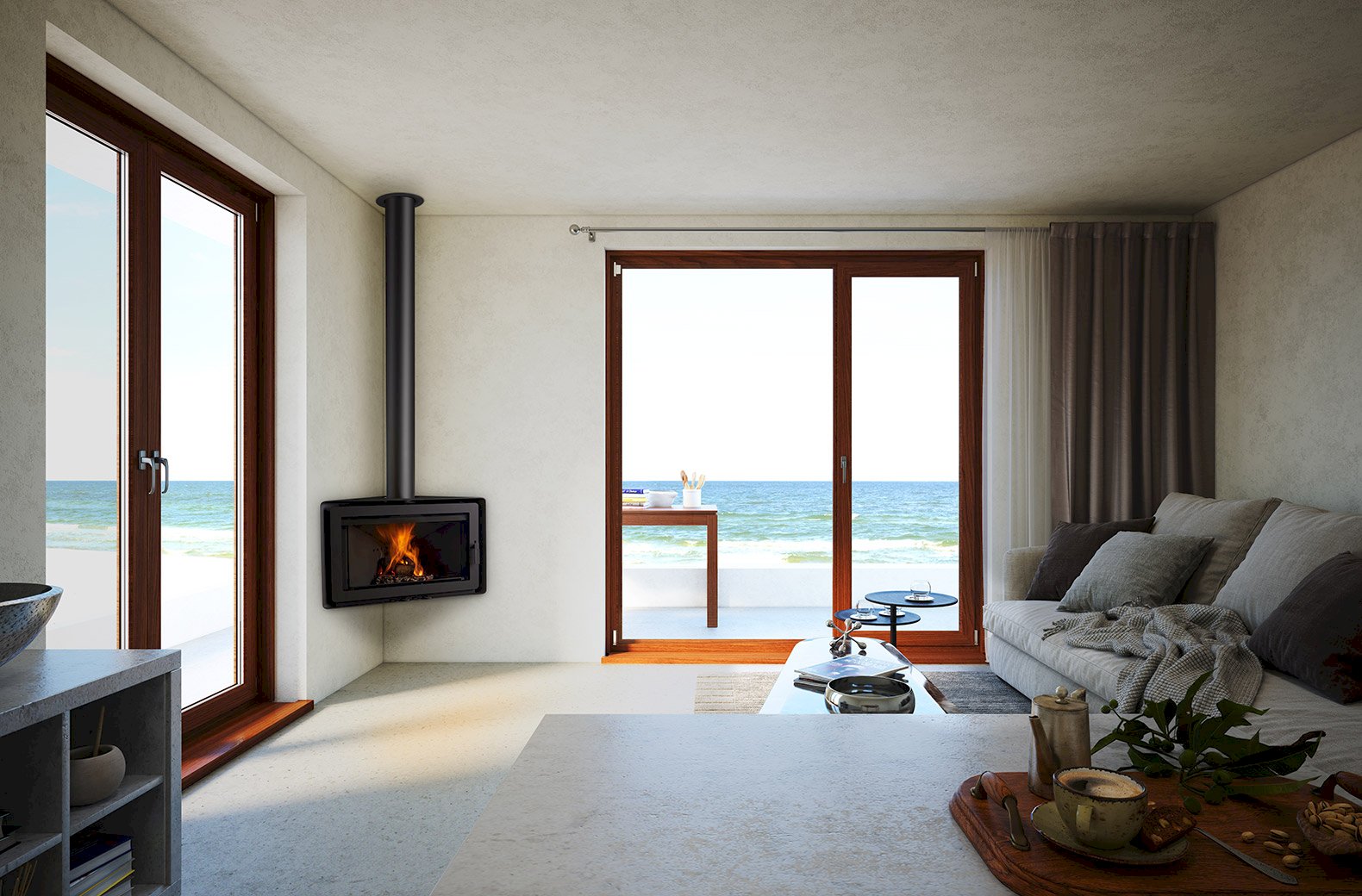 Piecka ANGLE vyniká najmä svojou univerzálnosťou. Môže byť inštalovaná aj priamo do rohu. S možnosťou otáčať piecku o 90° (Držiak na stenu za príplatok)